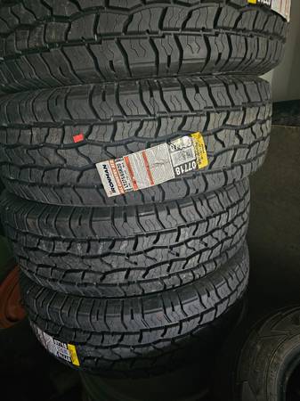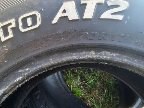 Lt265/75/16 Firestone destination A/t$450 set of 4. many other sets of lt 265s and lt 245s contact for details hankook dynapro At2 lt285/70/17about half tread $200. Many trailer tires 14'