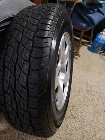 This was the spare off of my 2004 Toyota Rav4. The Rav currently only has 26,000 miles. The spare as you can tell by looking at it has never been out of the hard shell cover and never been on the ground! Still has the stripes around the tire! I normally would agree that the tire is over 10 years old and should be replaced, but there are no signs of weather cracking or deuteriation at all! The wheel even looks new except for a little corrosion in a few small spots!