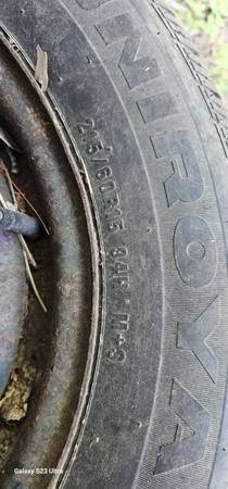 4- Tiger paw touring tires on steel rims. Fit grand am, alero, malibu. Great tread, hold air, On steel rims w/hub caps. Excellent tread