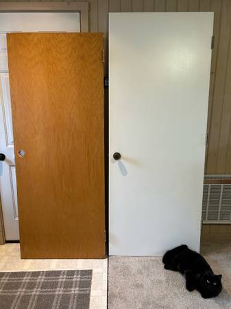 Natural finish W 29 7/8” (30”) x H 74 7/8” (75”) Hinged for left side open White painted W 31 7/8” (32”) x H 79 7/8” (80”) Hinged for left side open Tell me when you want to pick either or both. I’m...