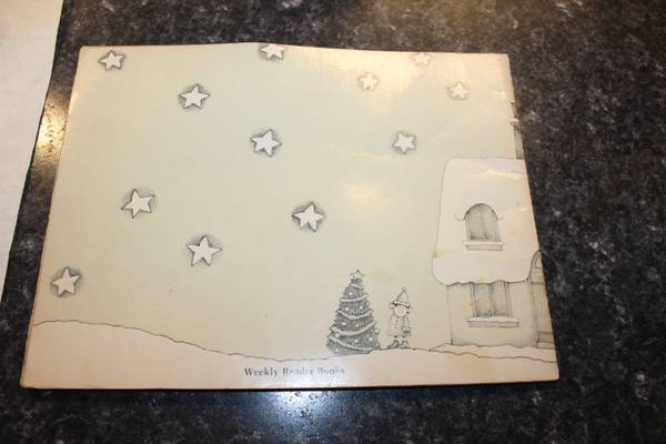 Cute book "Santa's Crash-Bang Christmas" and two handcrafted Christmas posters from the puffy paint era, ready for your home/next craft project! Book is from 1977. From a smoke-free home; given freely in as-is condition.
